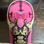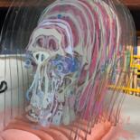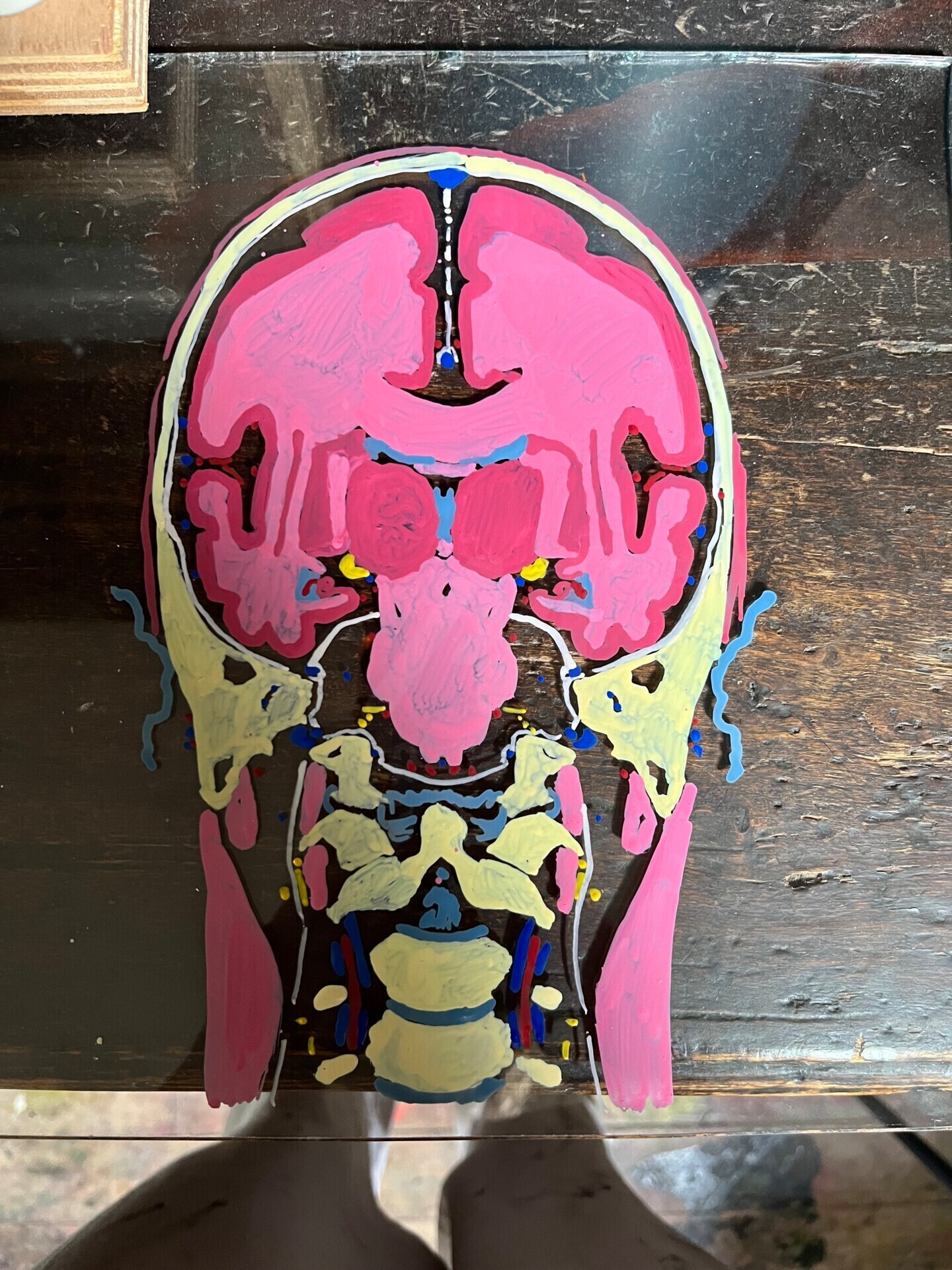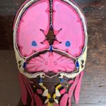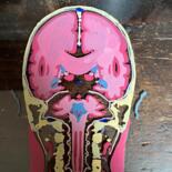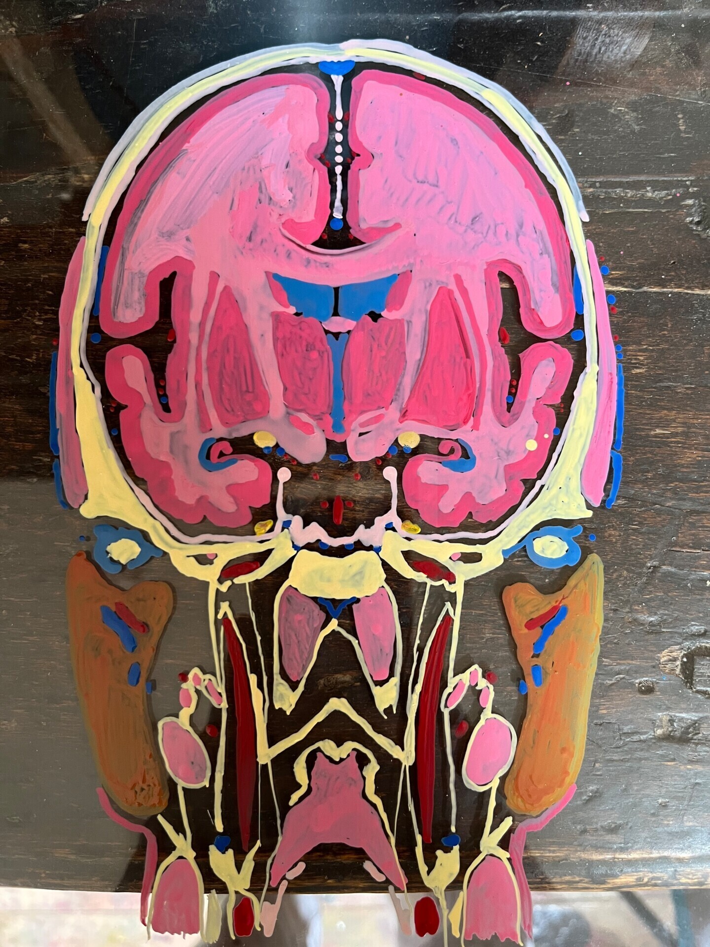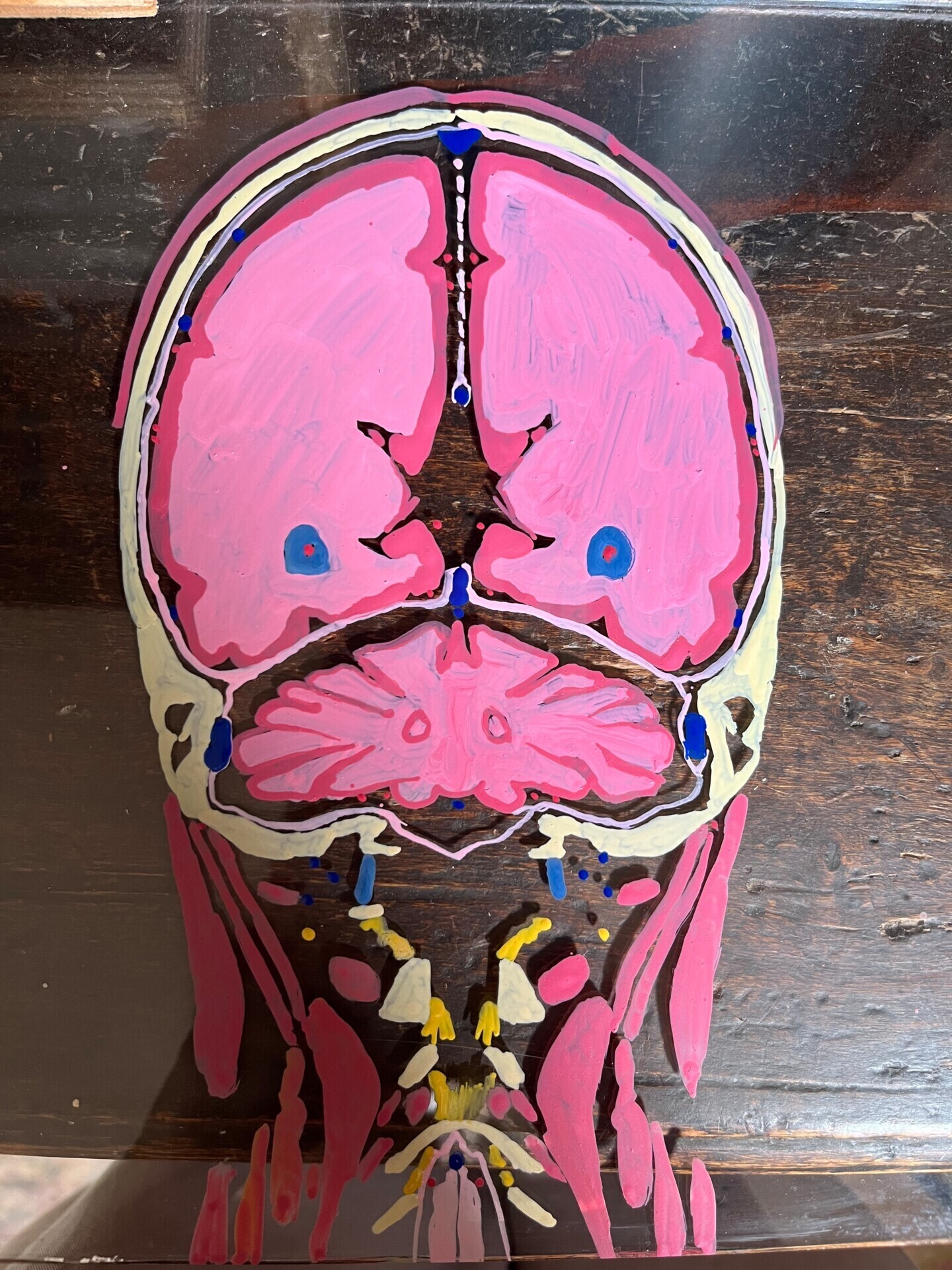 Peinture à l’huie sur verre, assemblage sur socle d’argile